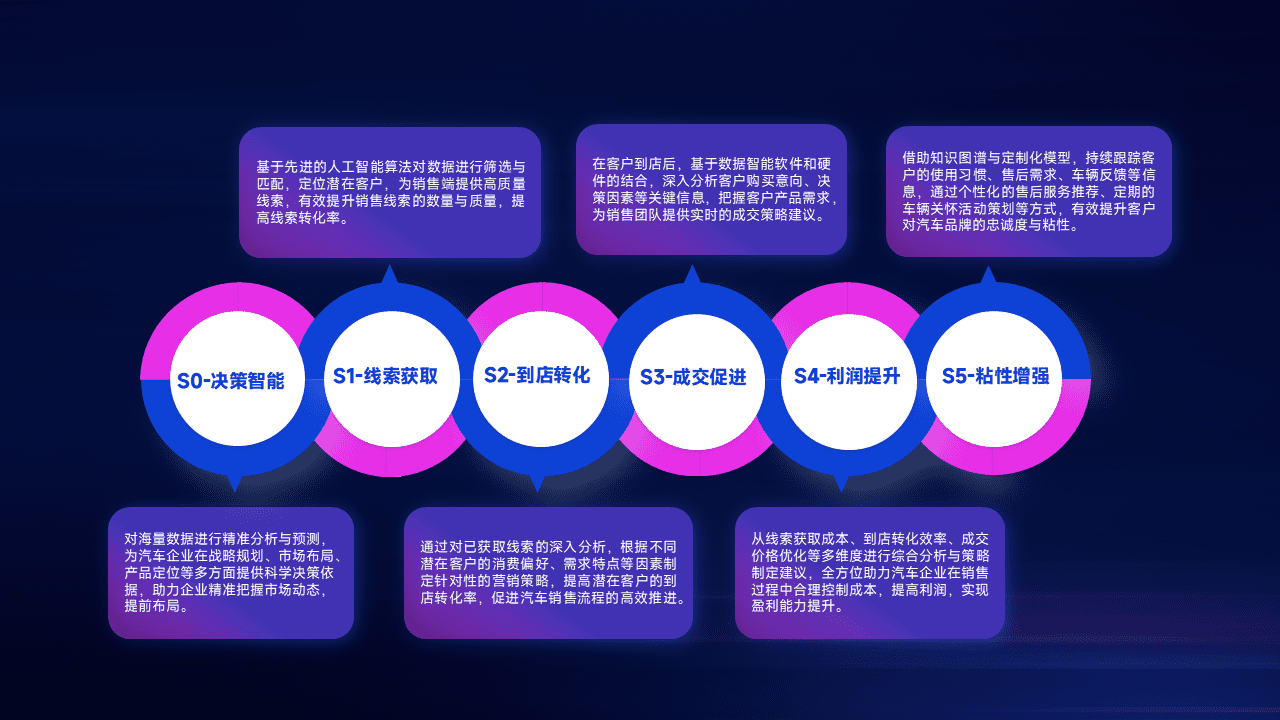 通过拓宽潜在客户来源、、、优化线索分配并提高到店转化率,,,,以增强销售效率。。。同时,,,利用线索数据不断优化分析模型,,,有效提升转化率,,,,扩大营销影响力。。。